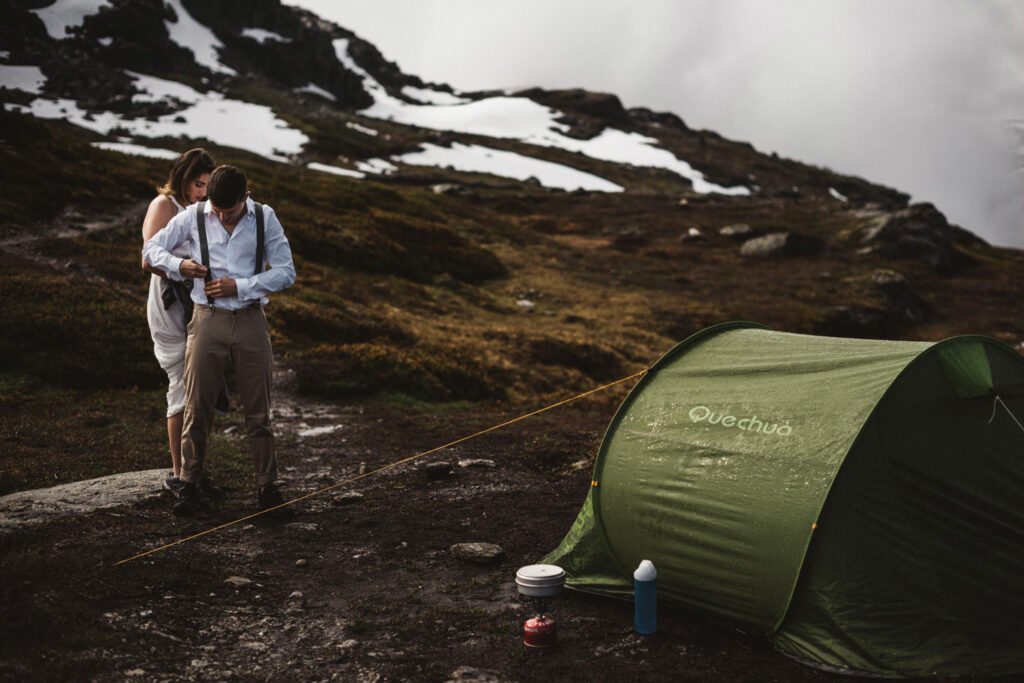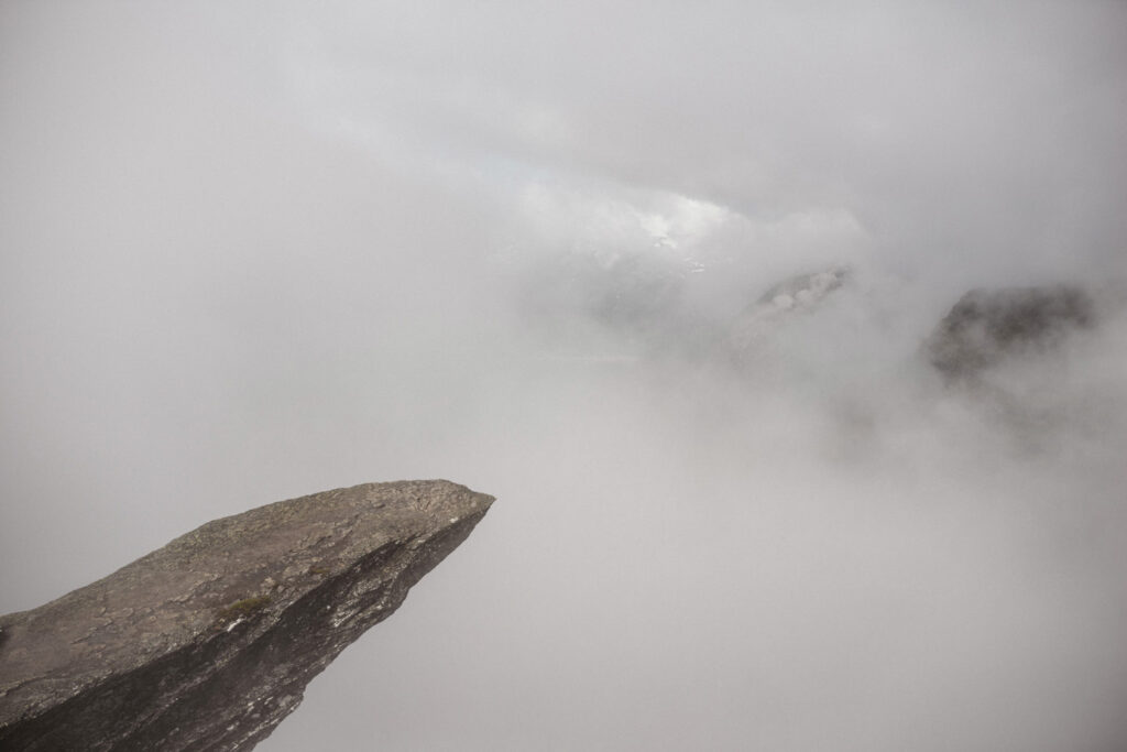 It was 3:30 in the morning, we were exhausted, and due to the intense fog, we couldn’t see anything. Suddenly, the famous Troll’s Tongue emerged. Us and nature. An incredible feeling. However, the conditions were very bad – we pitched the tents, went inside, and waited while listening to the raindrops. Our eyes were closing on their own, so I set the alarm every 15-20 minutes to check the weather conditions. They improved only around 9 a.m., so we started preparing for the photoshoot. It lasted maybe 20 minutes… Around 6 p.m., we took literally 5 more photos, of which one (the last one) was selected for the mentioned collection of the 50 best from around the world.